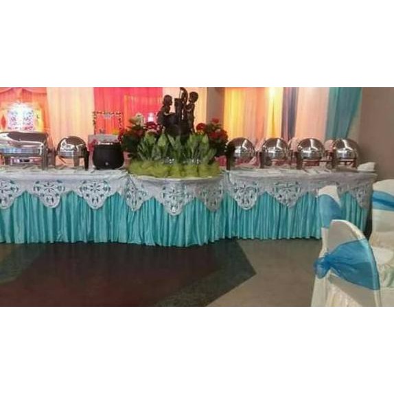Taplak prasmanan meja wedding/poni meja prasmanan kecil: Dekorasi rumah, dekorasi gedung (indoor / outdoor) foto & video shooting. Busana penjaga prasmanan 3 orang. Vas bunga meja prasmanan, 6. Aroma wangi yang dikeluarkan akan membuat siapa saja betah berada di rumah.